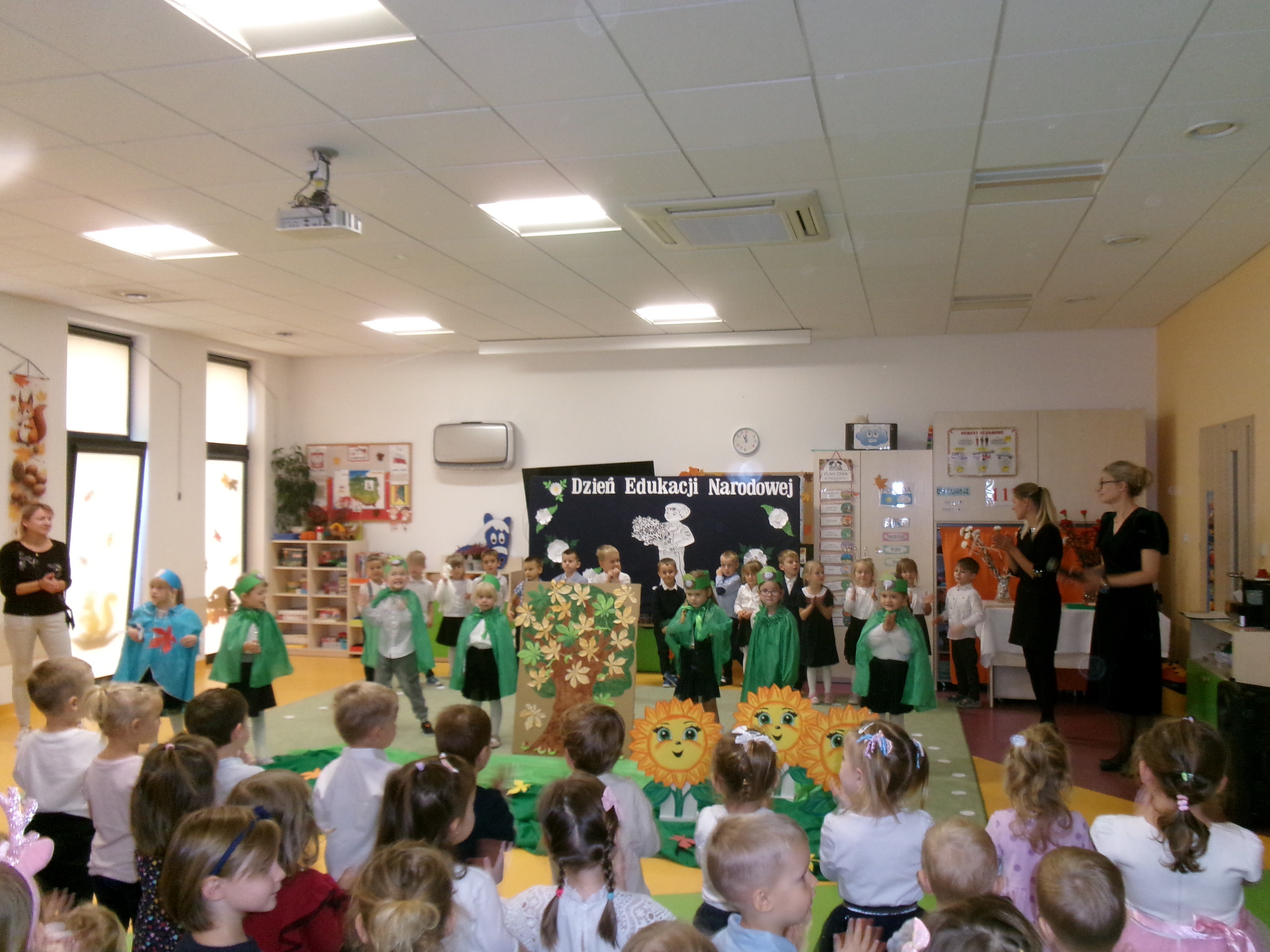W dniu 14 października w naszym przedszkolu odbył się uroczysty występ artystyczny z okazji Dnia Edukacji Narodowej w wykonaniu dzieci z grupy „Wiewiórki”.