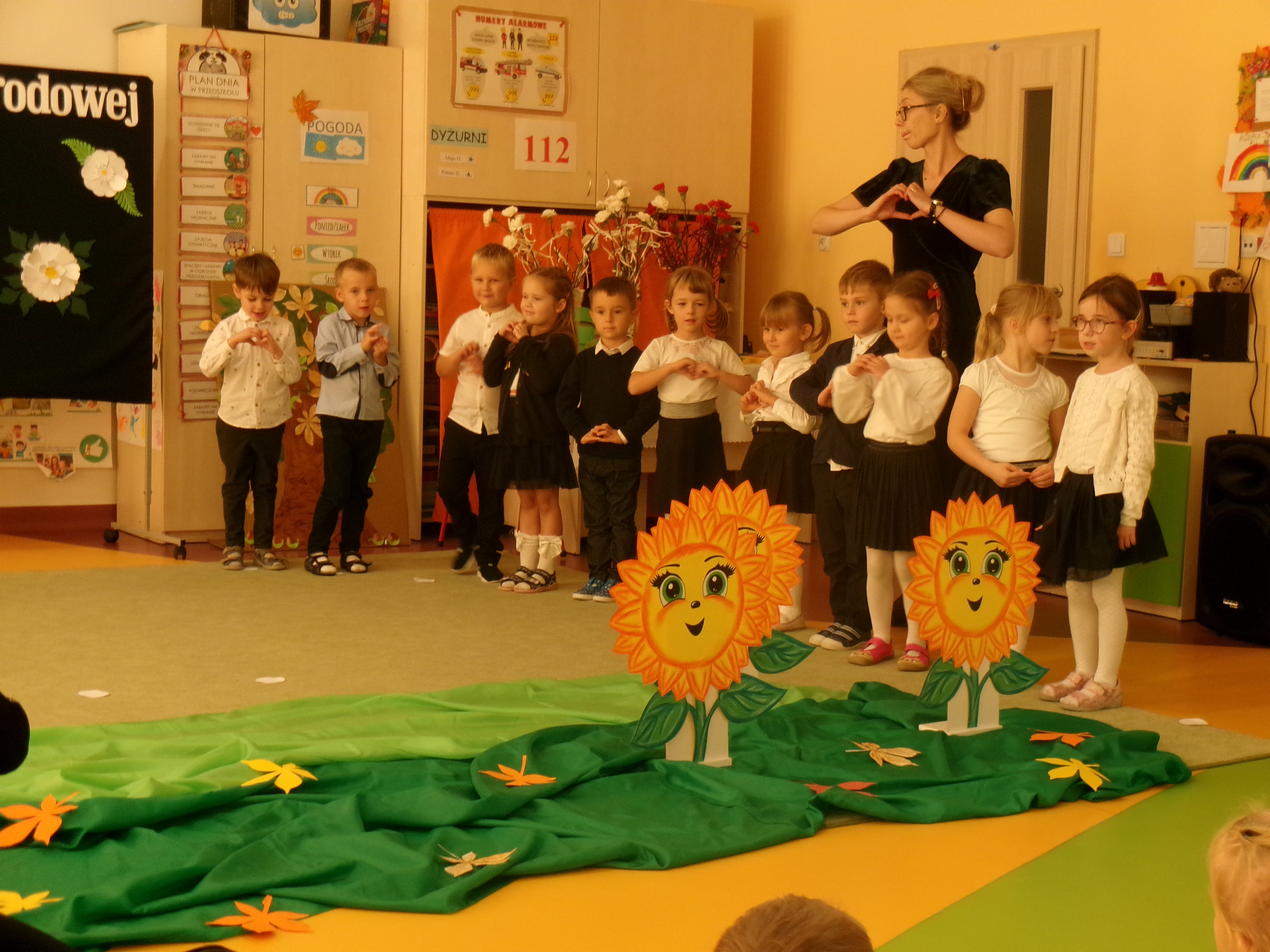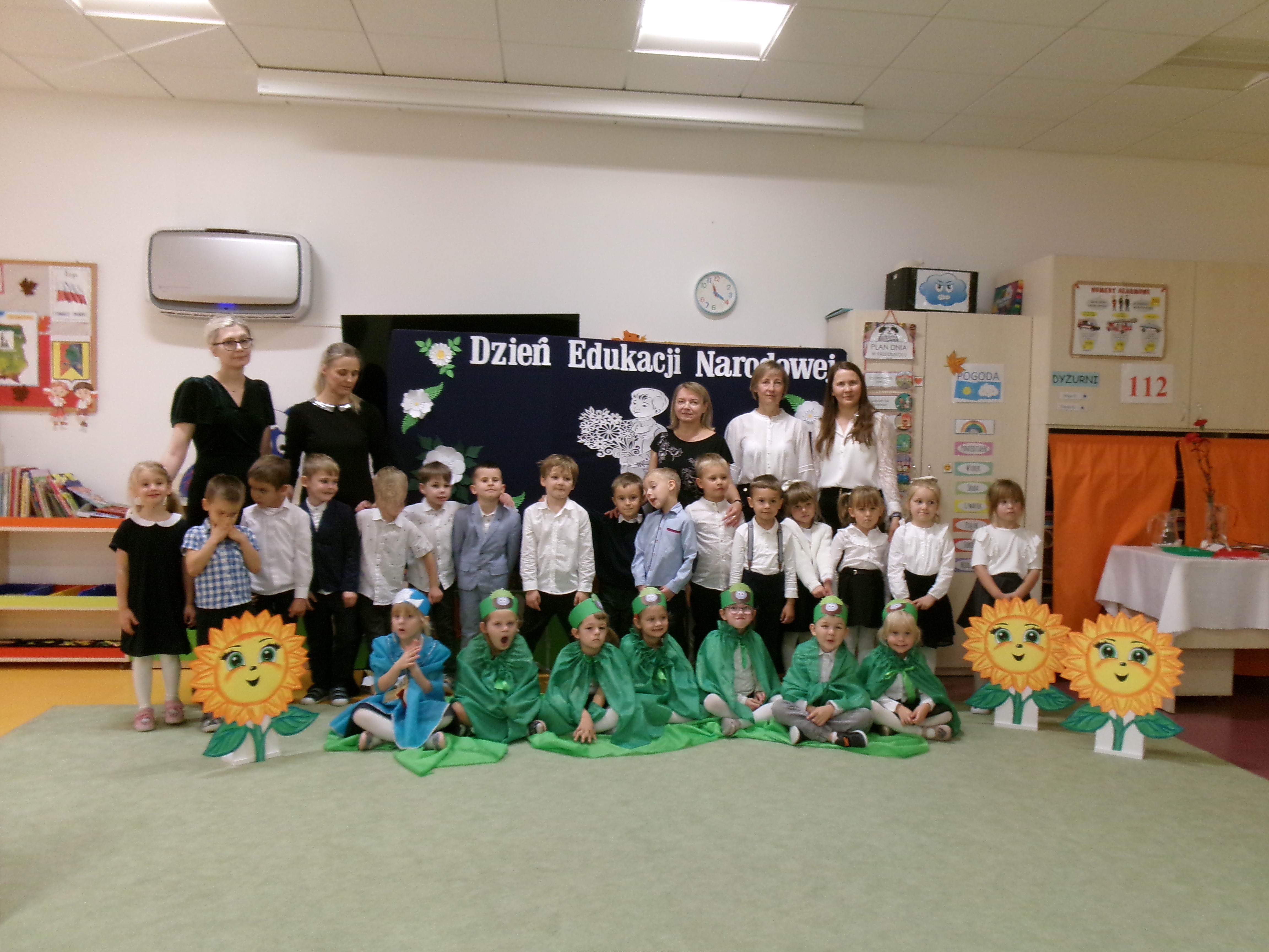 Dzieci podczas występu wyraziły wdzięczność nauczycielom i pracownikom przedszkola za ich codzienny trud, cierpliwość oraz dobre serce włożone w ich nauczanie i wychowanie. Występ artystyczny zakończył się wspólnym odśpiewaniem „Sto Lat” przez całą społeczność dziecięcą i wręczeniem wszystkim pracownikom przedszkola symbolicznego goździka i własnoręcznie wykonanych serduszek z życzeniami przez dzieci z grupy „Wiewiórki”.