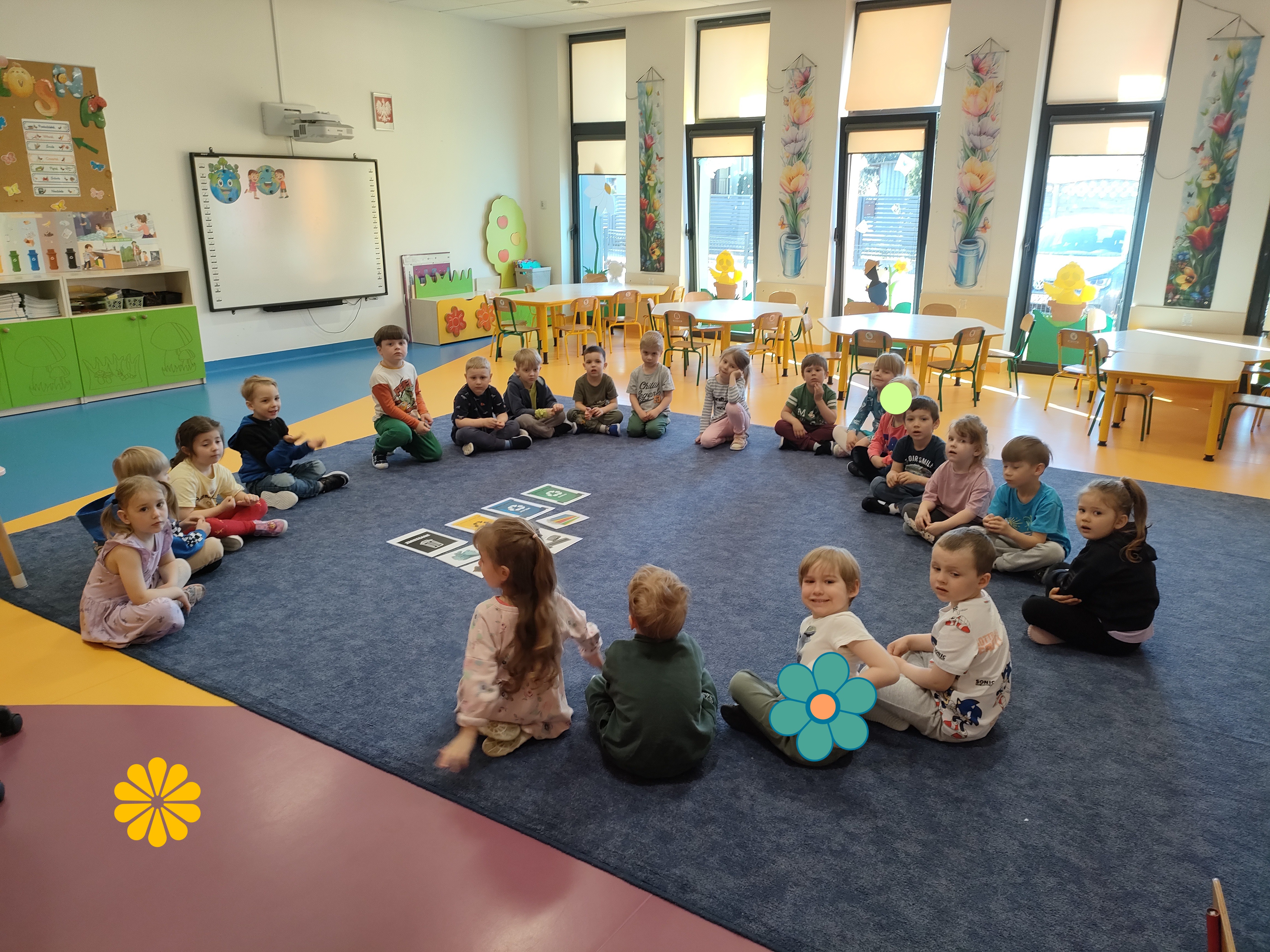 Dnia 22 kwietnia w naszym przedszkolu obchodziliśmy Światowy Dzień Ziemi. Dzieci uczestnicząc w różnych zabawach i aktywnościach dowiedziały się, jak można dbać o naszą planetę Ziemię, by zawsze była piękna, czysta i zielona. Przedszkolaki wysłuchały opowiadania pt. „Chora Planetka”, rozwiązywały ekologiczne zagadki, segregowały śmieci oraz wykonały oryginalne prace plastyczne. Dzieci stworzyły również kodeks małego ekologa oraz poznały znaczenie słowa „recykling”. Nasze dzielne przedszkolaki już doskonale wiedzą, że Ziemia to nasz wspólny dom i dla jej dobra należy oszczędzać wodę i prąd, segregować śmieci, sadzić drzewa oraz dbać o otaczającą nas przyrodę.