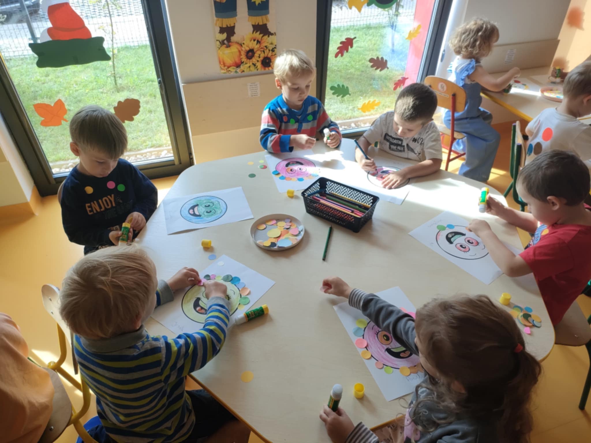 Dnia 15 września świętowaliśmy w naszym przedszkolu Międzynarodowy Dzień Kropki. Z tej okazji wszystkie dzieci przyszły do przedszkola ubrane w stroje w grochy i kropeczki. Dzień Kropki to okazja do rozwijania kreatywności dzieci i wiary we własne możliwości. Wszystkie przedszkolaki tego dnia uczestniczyły w różnych grach i zabawach z „kropką” w roli głównej. Podczas zajęć powstały również „kropeczkowe” prace plastyczne. To był radosny dzień dla całej społeczności przedszkolnej.