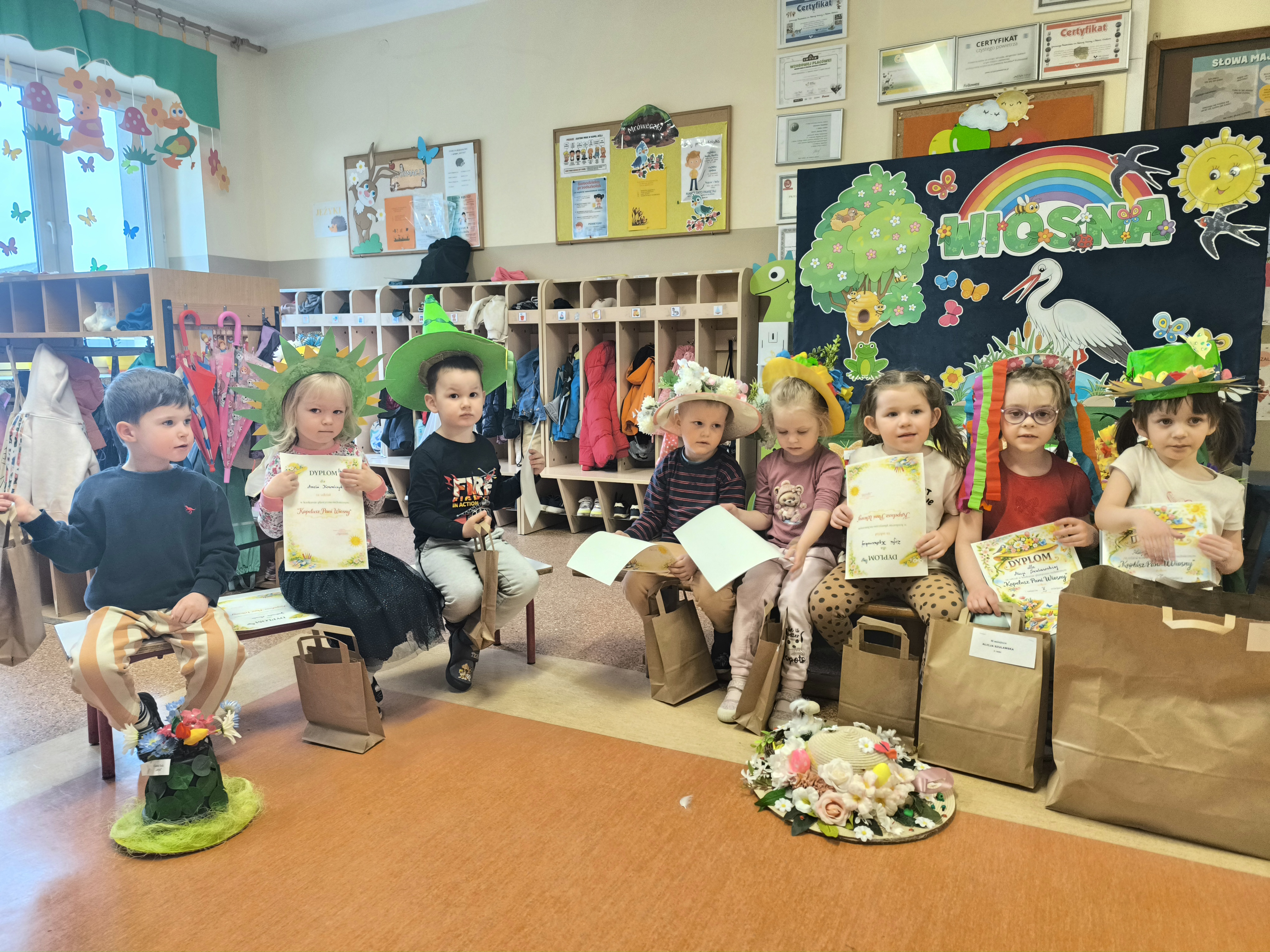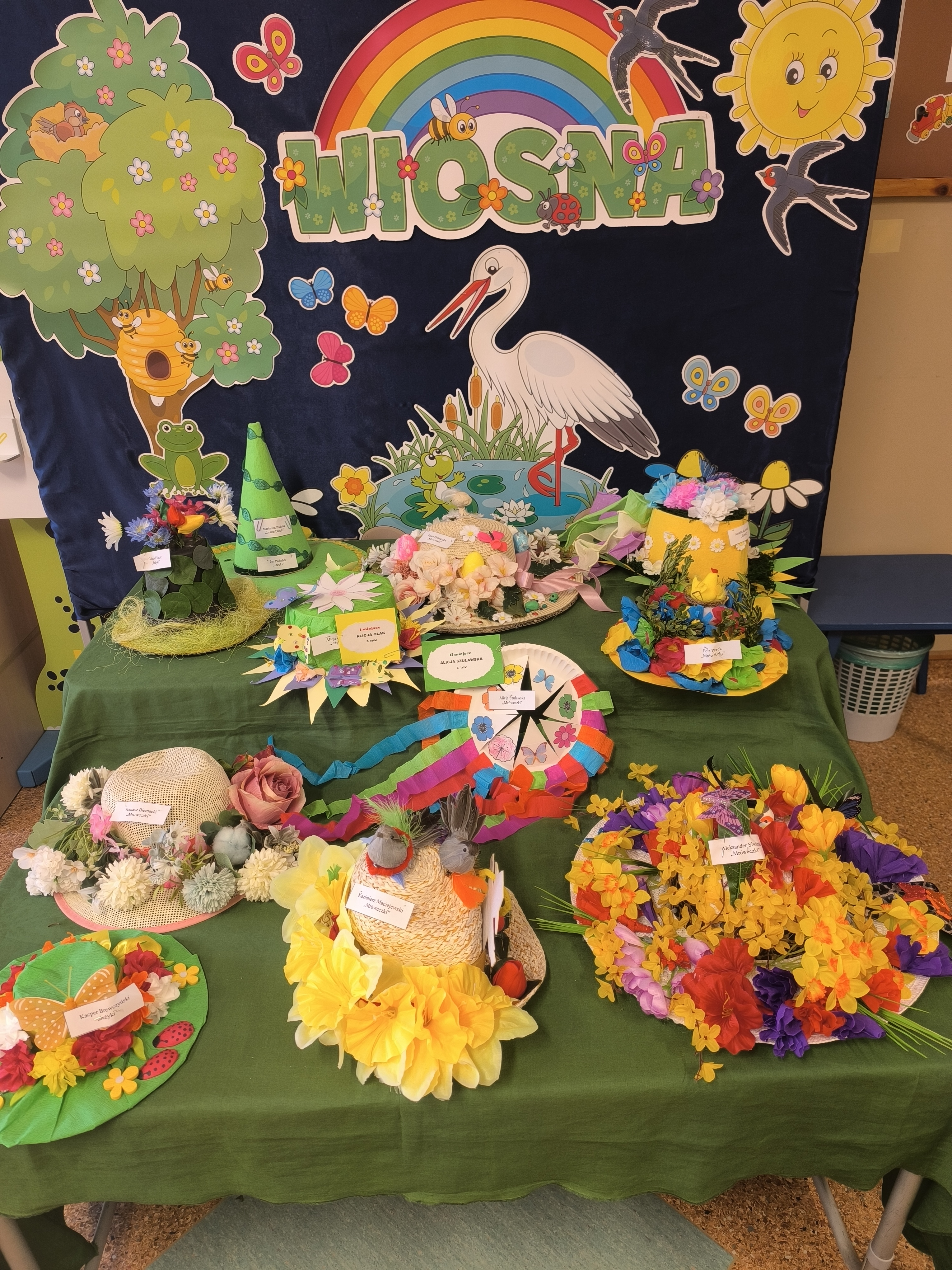 W dniu 26 marca został rozstrzygnięty konkurs plastyczno-techniczny „Kapelusz Pani Wiosny” cieszący się dużym zainteresowaniem i zaangażowaniem ze strony dzieci i rodziców. Na konkurs wpłynęło 57 wyjątkowych i niepowtarzalnych Kapeluszy Pani Wiosny. Wszystkie prace zachwyciły swą pomysłowością, kolorami i wiosenną atmosferą.