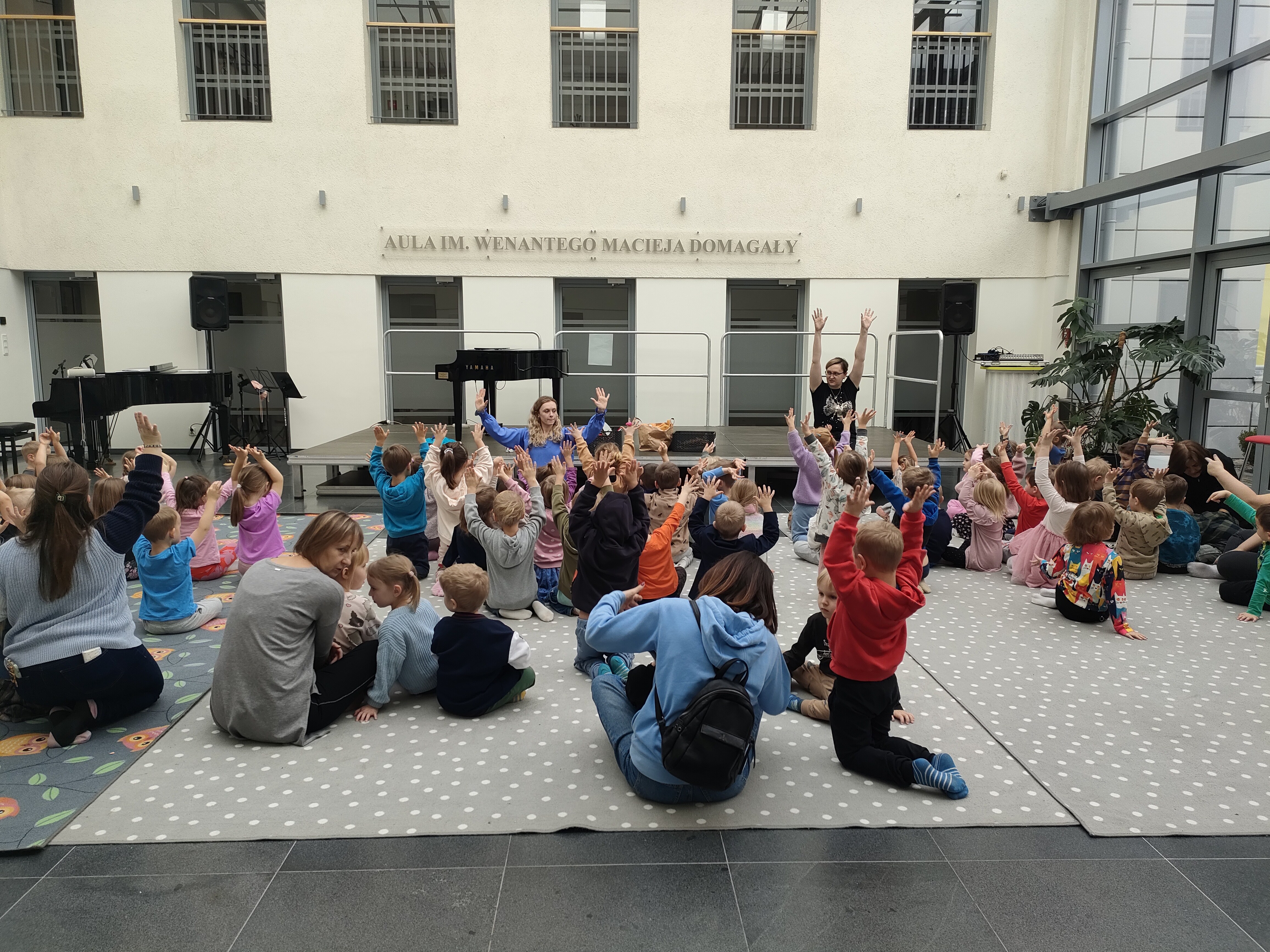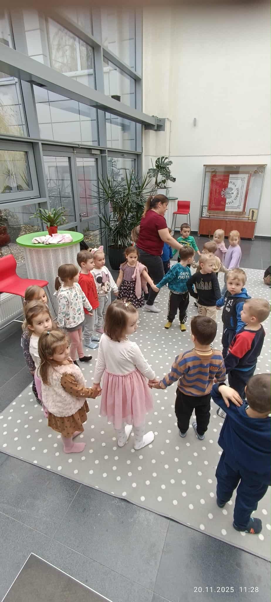 W czwartek 20 listopada dzieci z grup „Misie”, „Leśne Duszki” i „Żuczki” wybrały się na wycieczkę do kina „Muza” na warsztaty muzyczne pt. „Listopad - listonosz”. Podczas zajęć przedszkolaki bawiły się wesoło w rytm muzyki wydobywającej się z dużego fortepianu. Dzieci tańczyły w parach i w kółeczkach oraz bawiły się, podając sobie pluszowego misia. Nie zabrakło też zabawy pt. „Stary niedźwiedź”, którą znają wszystkie przedszkolaki. Podczas zajęć wszyscy mieli okazję zagrać na instrumentach perkusyjnych, takich jak: trójkąty, bębenki, marakasy, klawesy oraz grzechotki jajeczka. Dzieci zadowolone i pełne pozytywnej energii wróciły bezpiecznie do przedszkola.